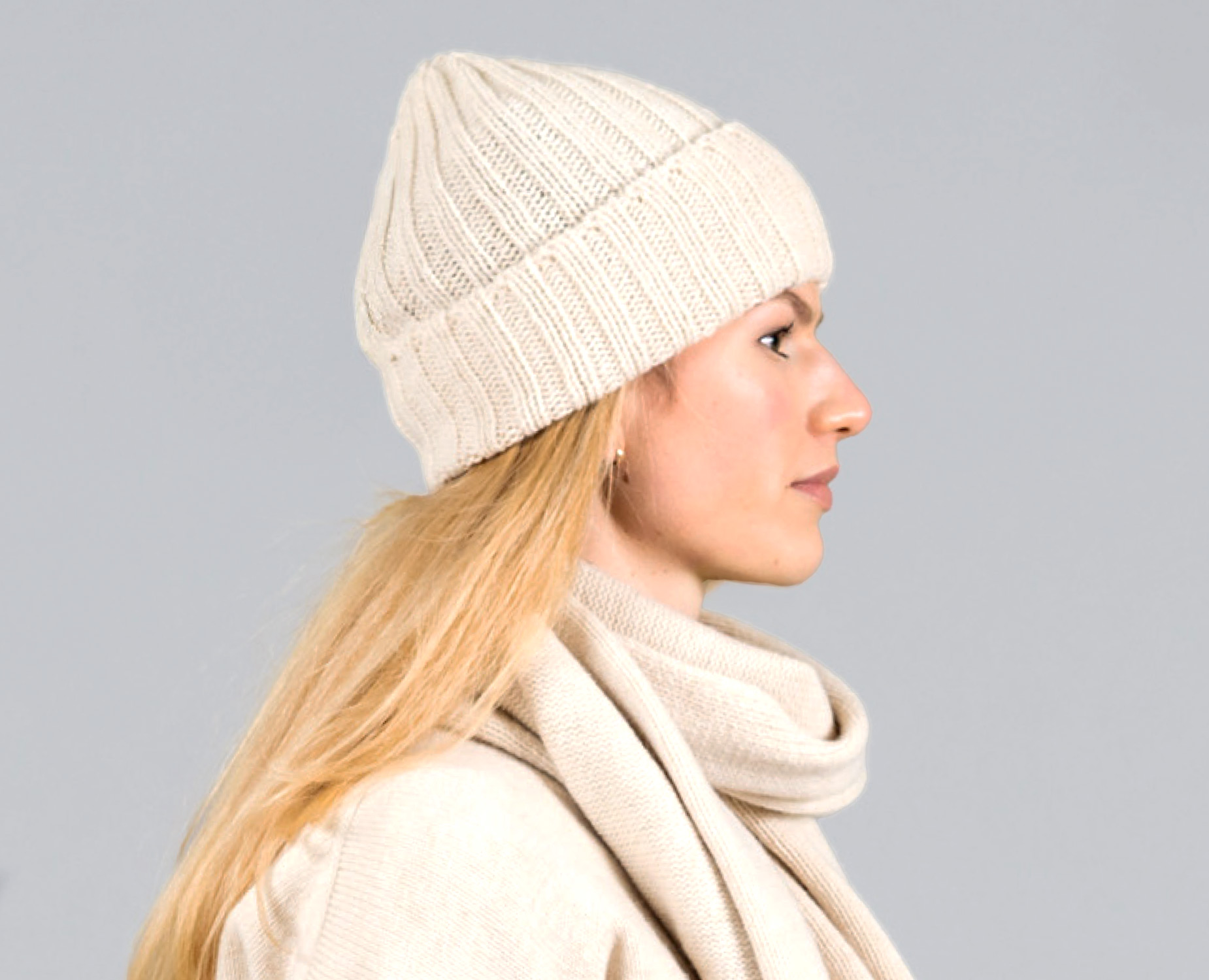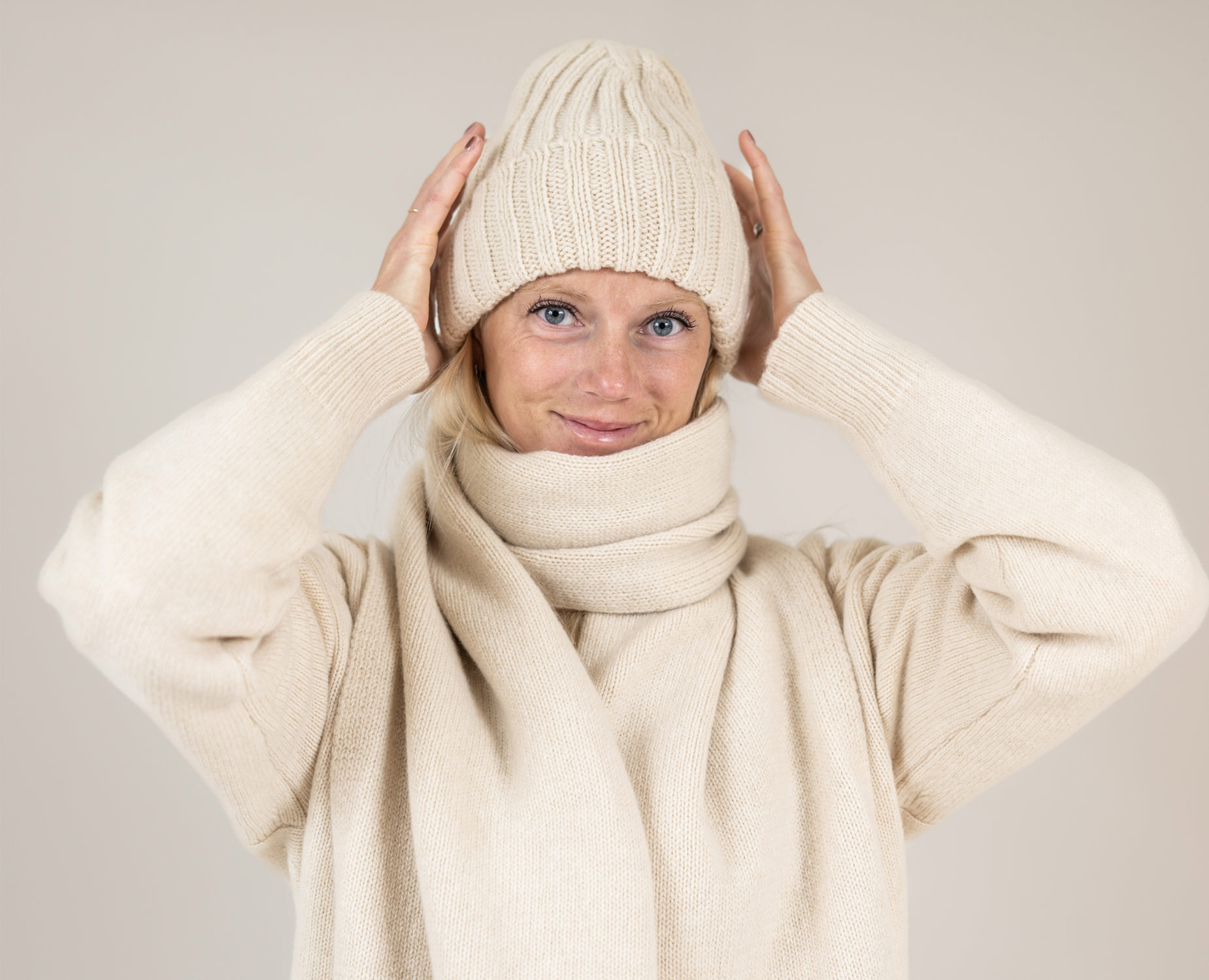 Soft knitted beanie made from 100% pure lambswool, a natural, renewable material that is both recyclable and biodegradable. The lambswool yarn is sourced from the UK and comes exclusively from sheep that have not been subjected to mulesing, ensuring animal welfare throughout the production process. Designed to provide warmth and comfort, the beanie offers natural insulation while remaining breathable. A sustainable and timeless accessory suitable for everyday wear during colder seasons. Knitted in Latvia.