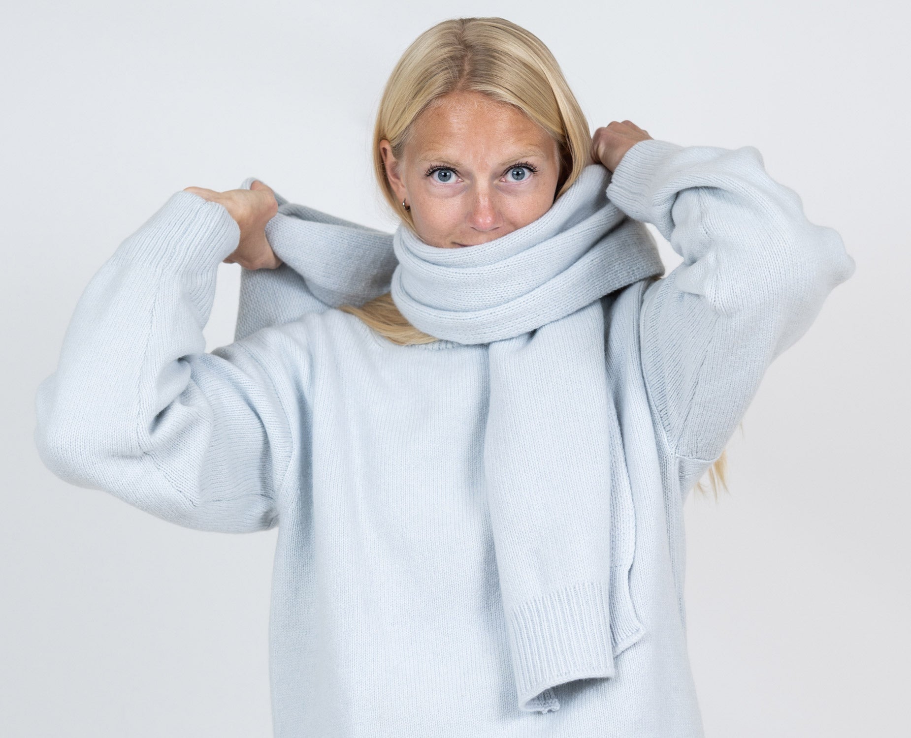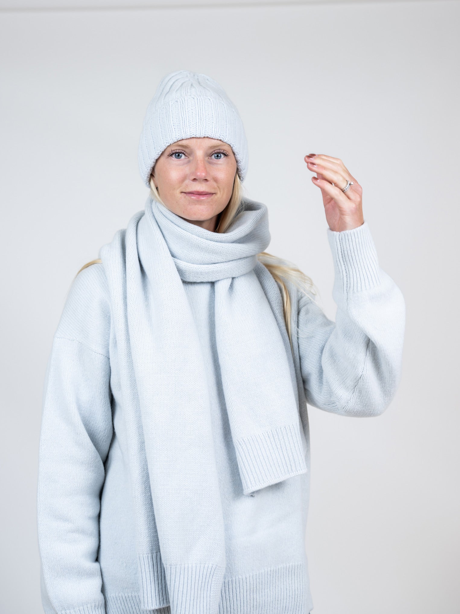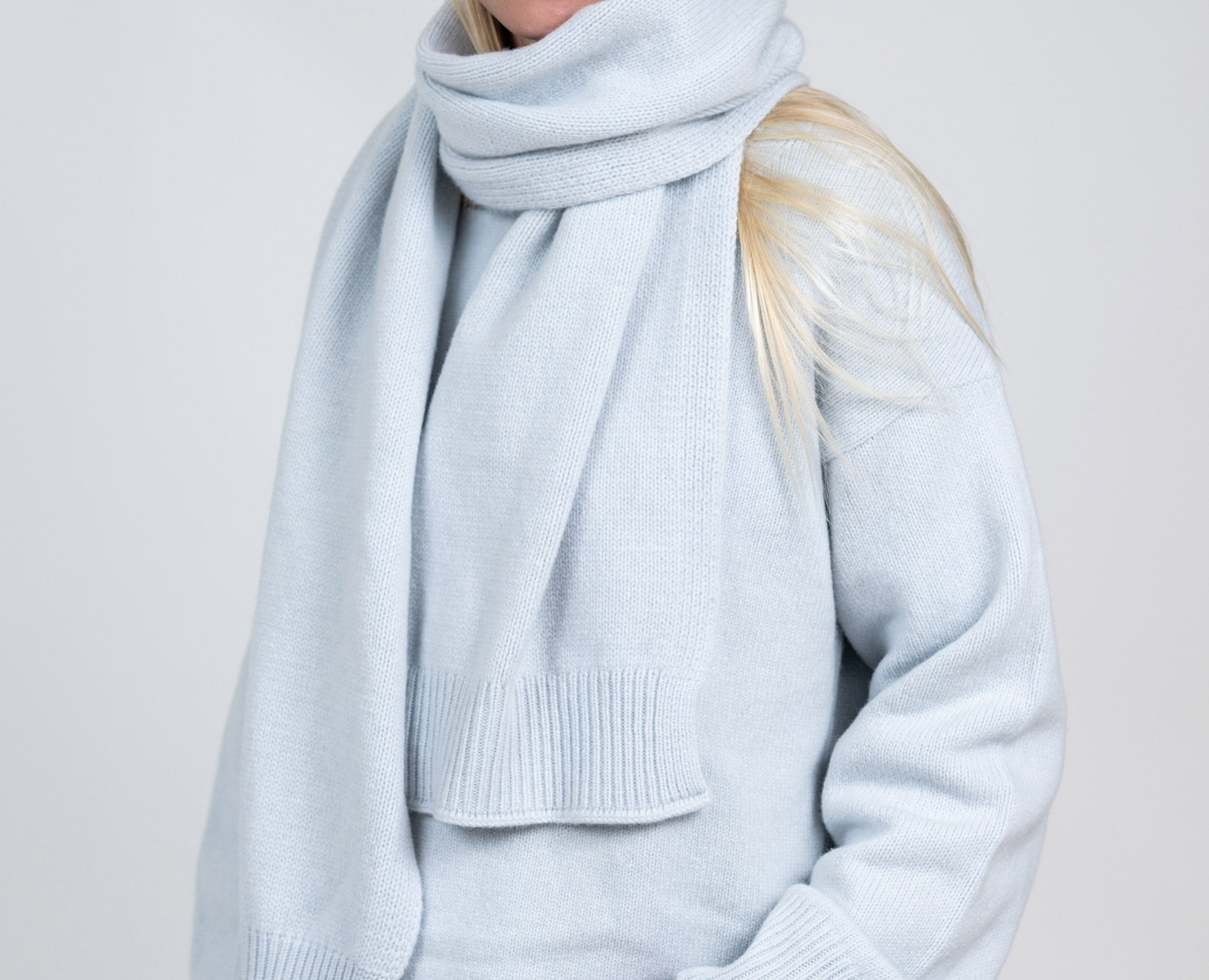 Soft, knitted scarf made from 100% pure lambswool. Measuring 180 x 38 cm, it is suitable for wrapping, layering or wearing loosely around the neck. The high-quality yarn is produced in the UK from wool from animals that have been raised in good animal welfare conditions and have not been subjected to mulesing. The scarf is responsibly knitted in Latvia, combining traditional craftsmanship with ethically sourced materials. A timeless and functional accessory for cooler seasons.