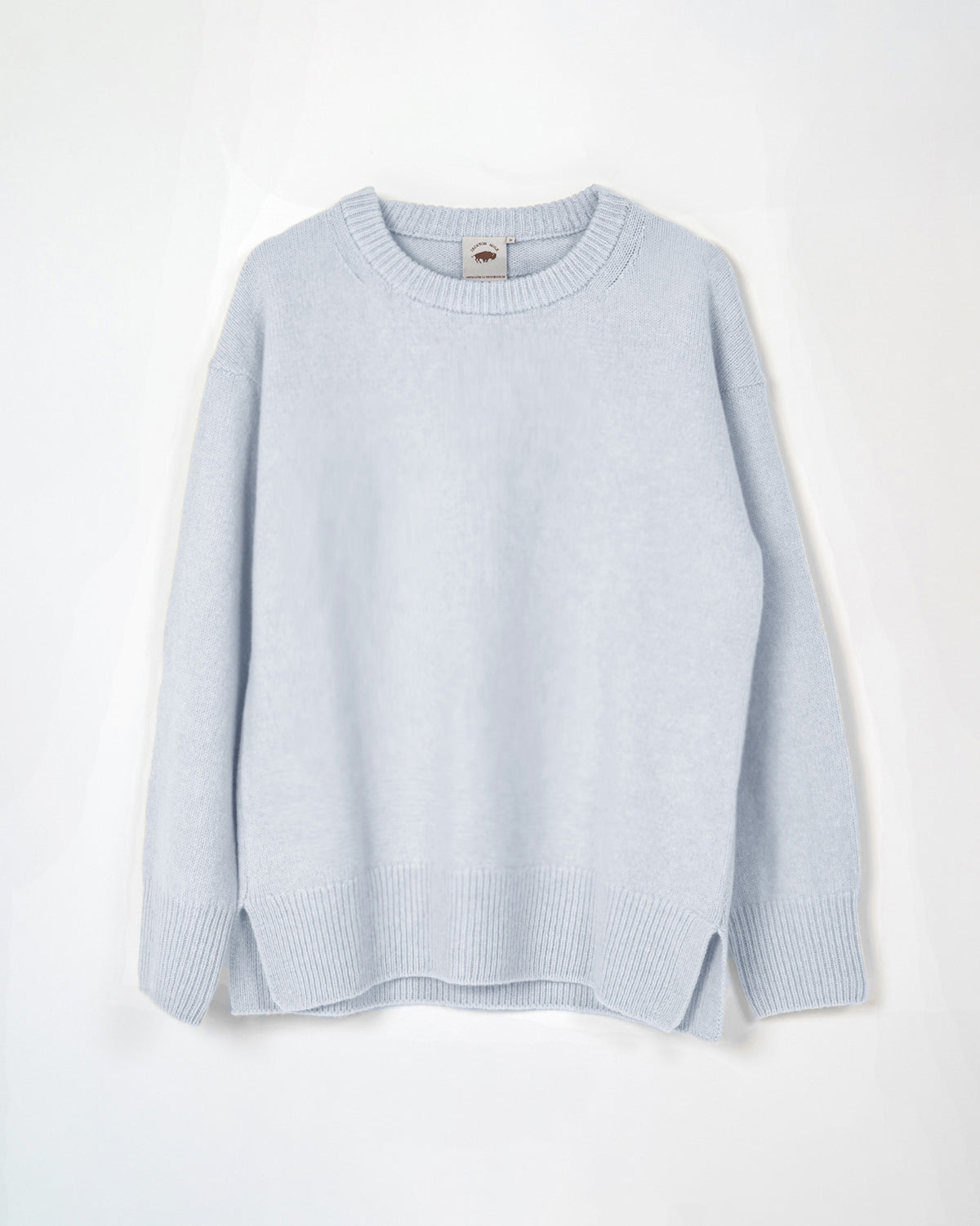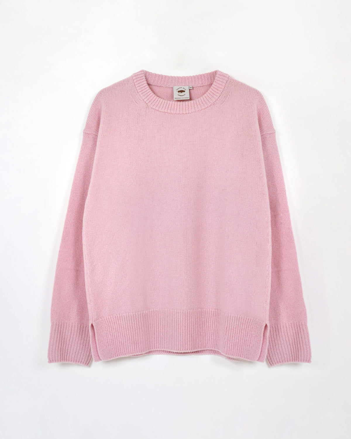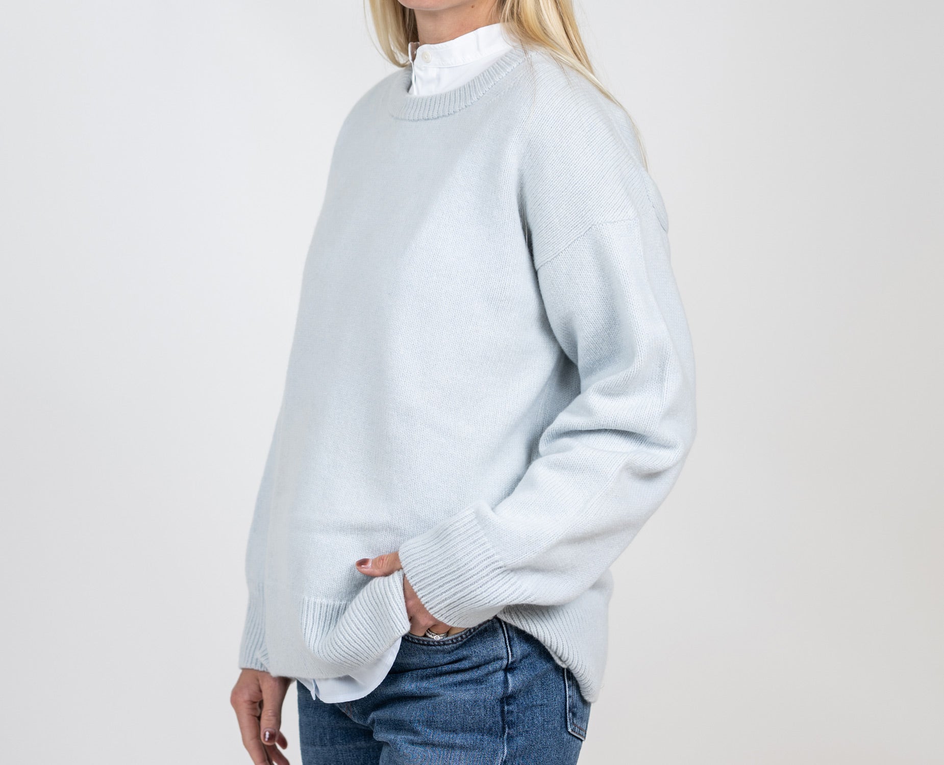 Round-neck, oversized knitted sweater in the softest lambswool with rolled-down sleeves.