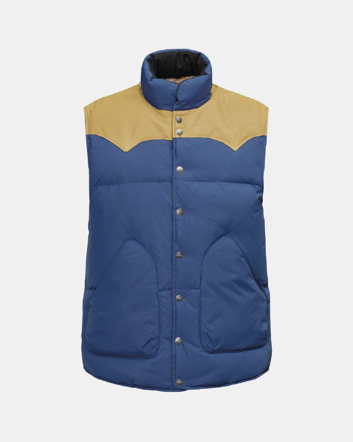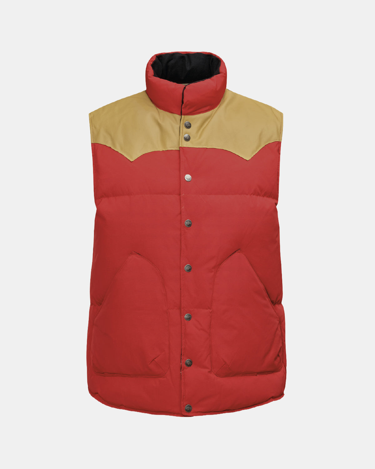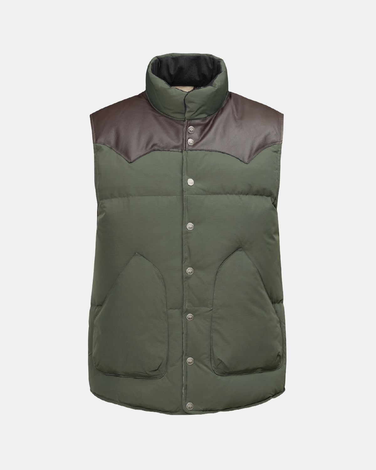 This style dates back to the 70s, but the Jackson Hole Originals version has been consciously updated in terms of fabrics, reinforcements and fit. The shell is made from 100% recycled 105 gsm Taslan Nylon with a DWR (Durable Water Repellent) finish. The shoulder yoke is made from chrome-free leather and filled with RDS-certified down, which means the animals do not experience unnecessary stress, always have access to food and water, are never force-fed and the down is never plucked from live birds. Available in Black, Deep Red, Midnight & Olive. The female model is 177 cm tall and wears a size S.