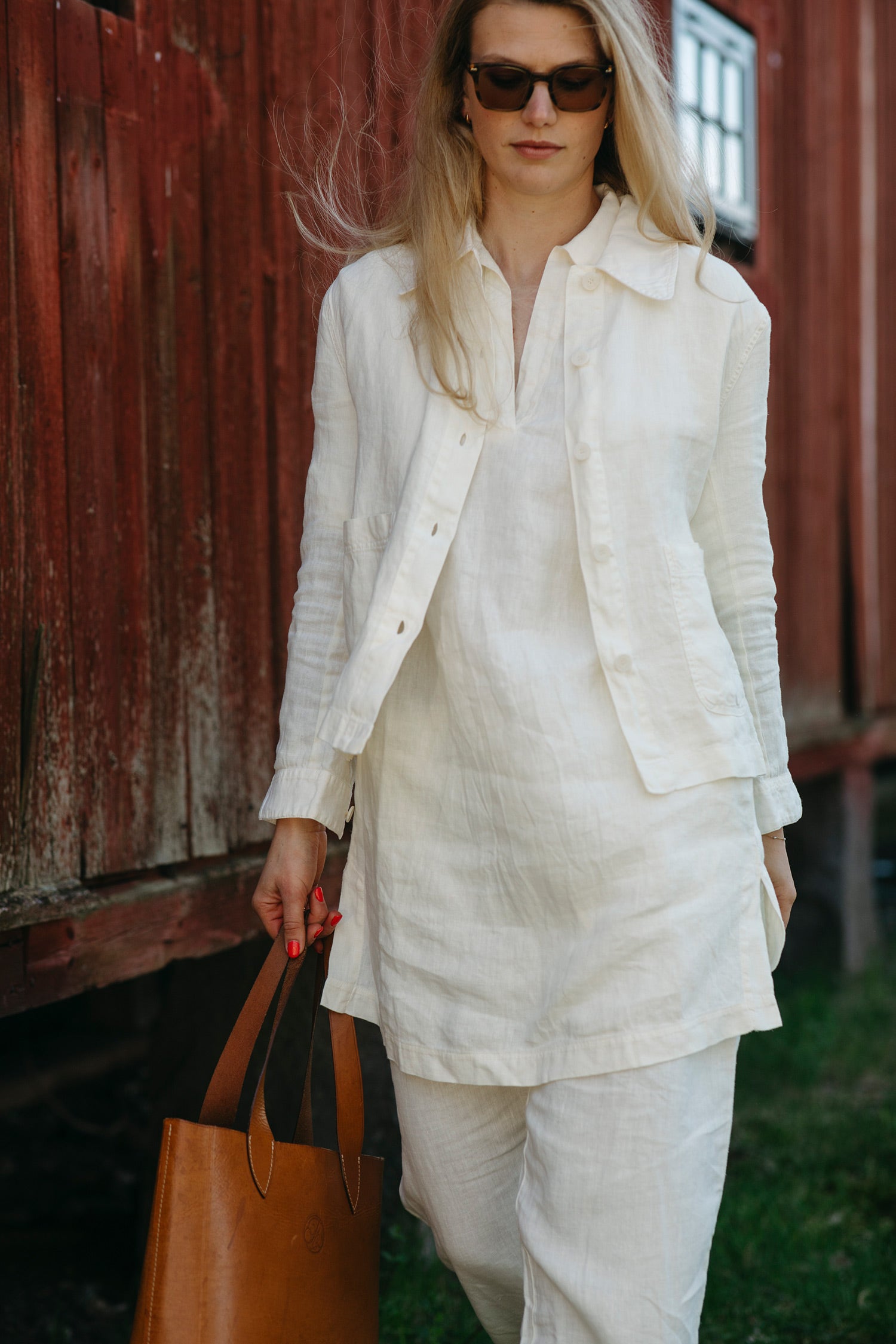 En kort, rak linnejacka med påsydda fickor och sidslitsar som passar till det mesta.