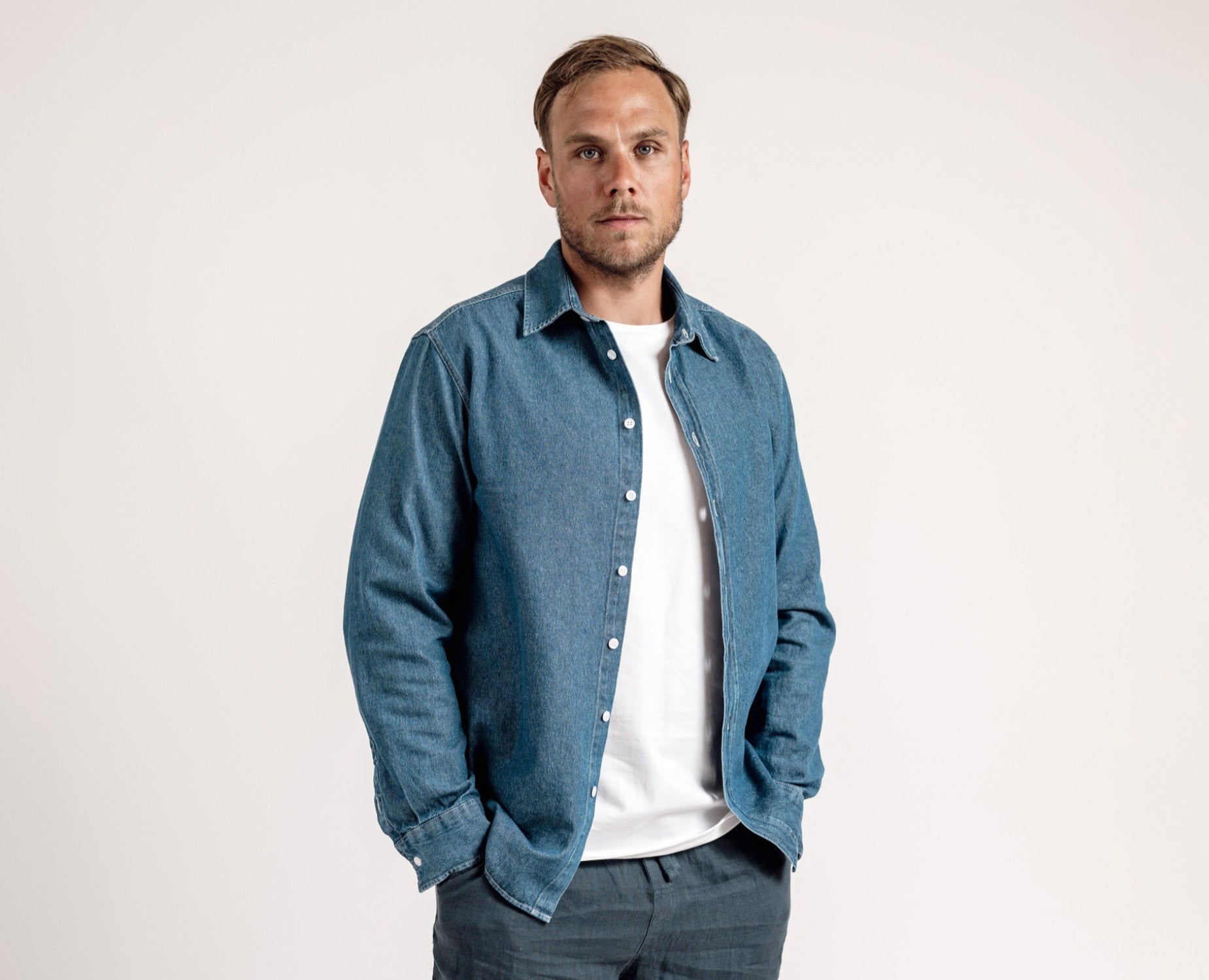 Denimskjorta tillverkad av 100 % ekologisk bomull, förtvättad för en mjuk känsla och en avslappnad look. Skjortan har en normal passform som är bekväm utan att sitta för löst eller för tajt. Den är designad med ett dekorativt ok i ryggen som en extra detalj. Skjortan har en klassisk nedvikt krage och en lätt rundad fåll, vilket gör den lämplig att bära både instoppad och lös. Tillverkad av ekologisk bomull odlad utan syntetiska bekämpningsmedel eller gödningsmedel, vilket främjar en mer hållbar och miljövänlig textilproduktion.