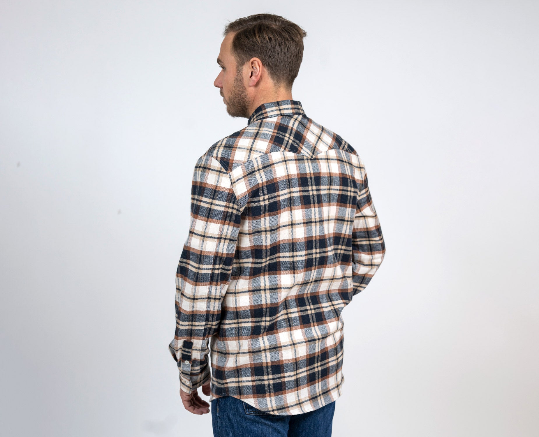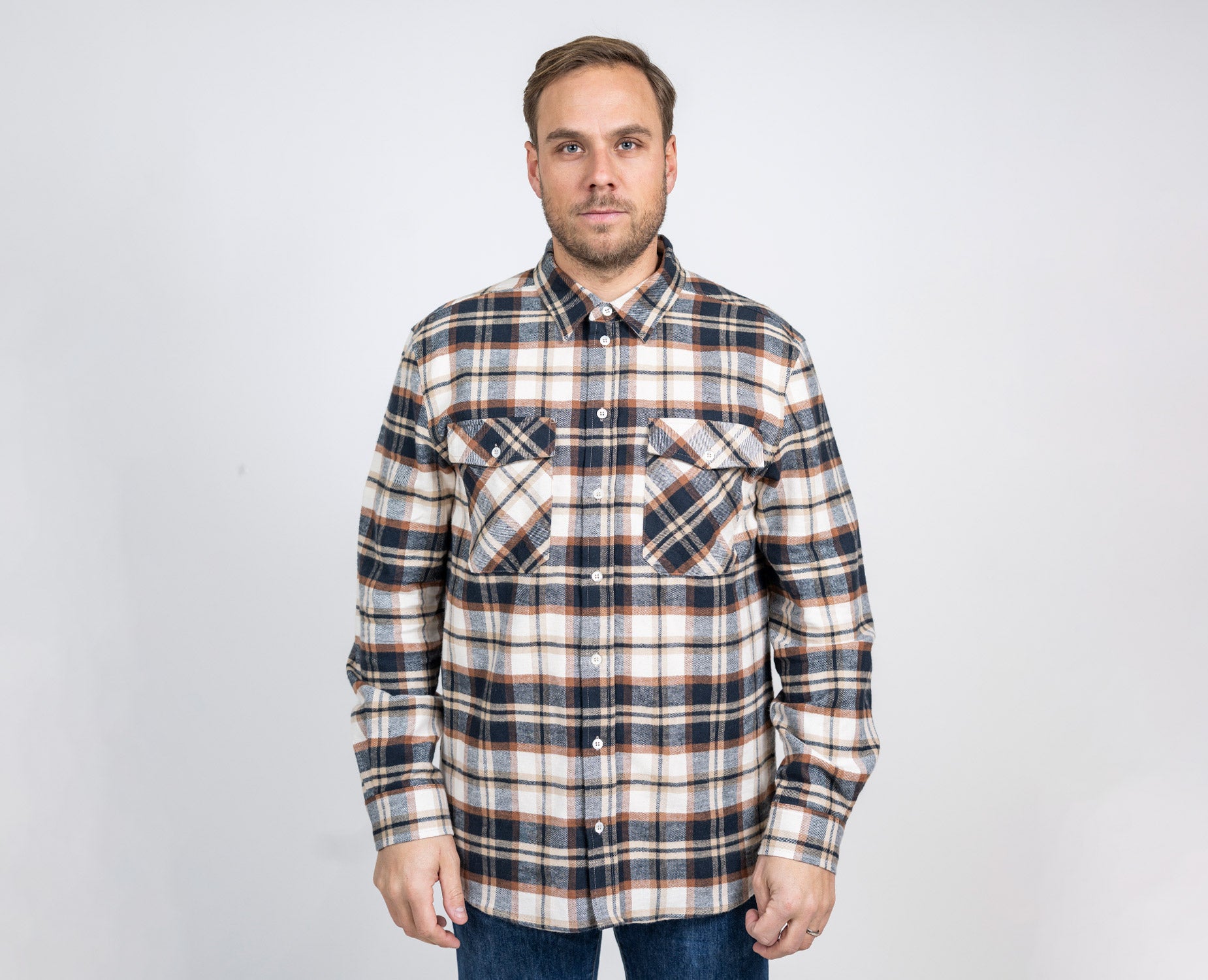 Leo Flannel Shirt är en klassisk flanellskjorta i en mjuk och behaglig kvalitet. Skjortan har en traditionell krage och två praktiska bröstfickor. Det rutiga mönstret går i bruna, beige och navy toner – en tidlös färgkombination som passar lika bra till vardag som till lediga helger. Modellen har en normal passform som ger en avslappnad men strukturerad siluett. Ett pålitligt plagg för säsongens alla lager-på-lager-looks.