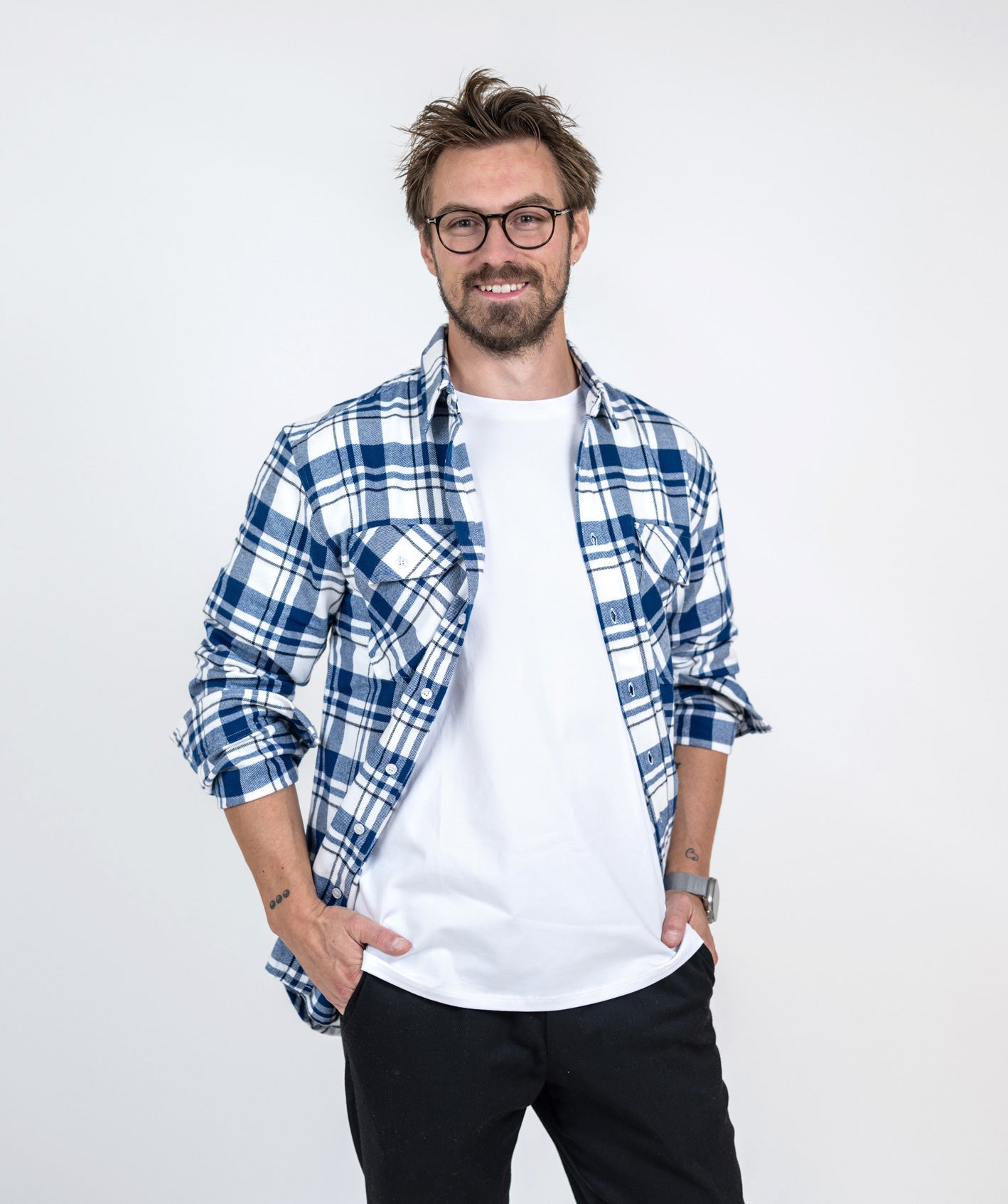 Rutig flanellskjorta tillverkad av 100 % mjuk, borstad bomull. Skjortan har två bröstfickor med lock och knappar för extra funktionalitet. Designad med en klassisk nedvikt krage och okavskärning baktill för optimal passform och struktur. Fållen är lätt rundad, vilket gör att skjortan kan bäras både instoppad och utanför. Lämplig som lager-på-lager-plagg eller för sig själv i avslappnade sammanhang.