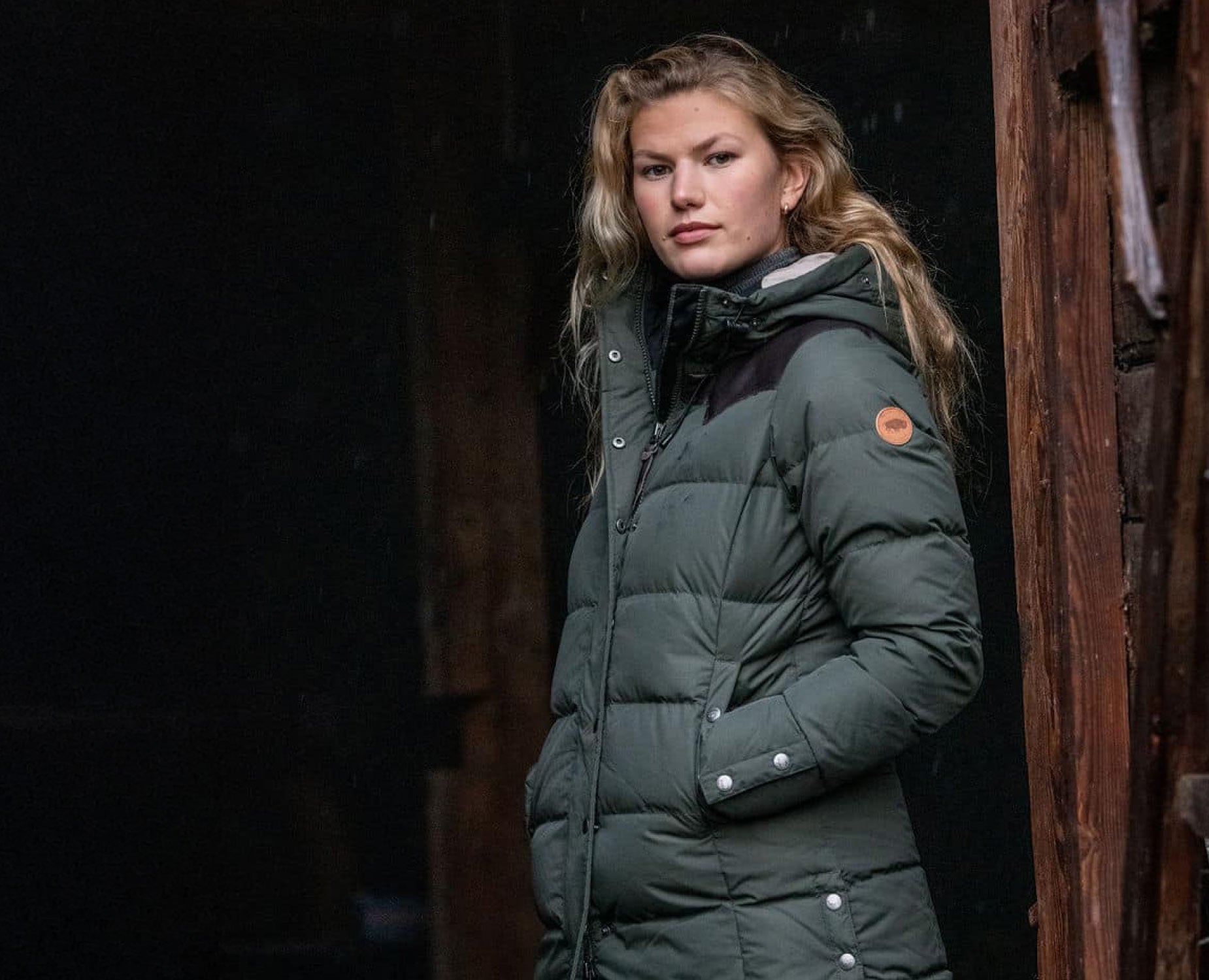 En lätt figursydd, längre dunjacka som tål väta med det klassiska skinnoket över axelpartiet. Finns i färgerna Black, Deep Navy och Olive.