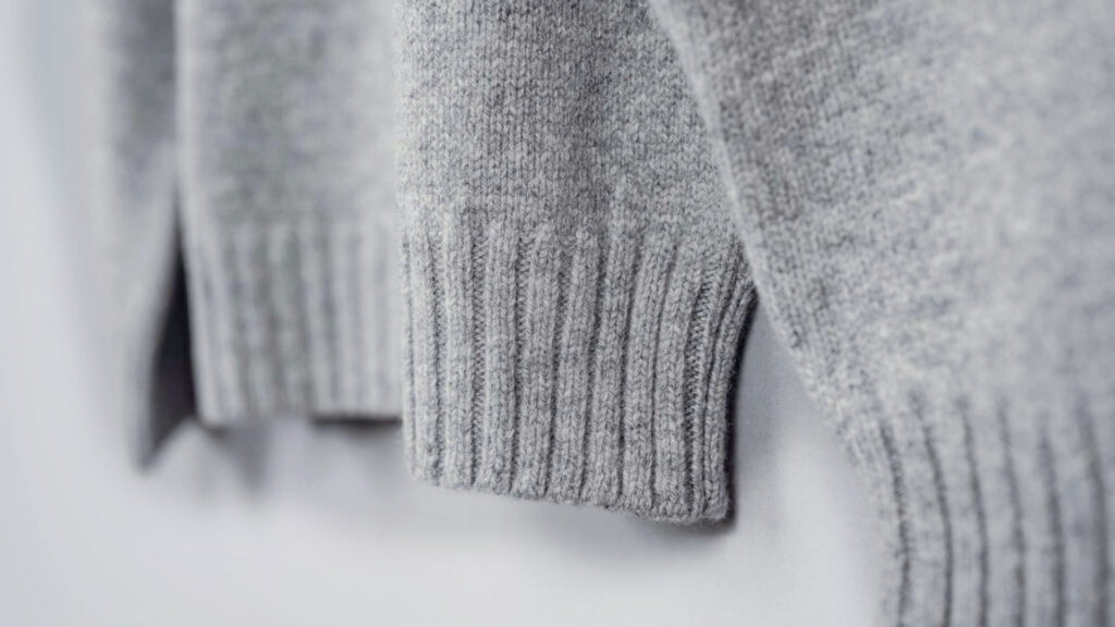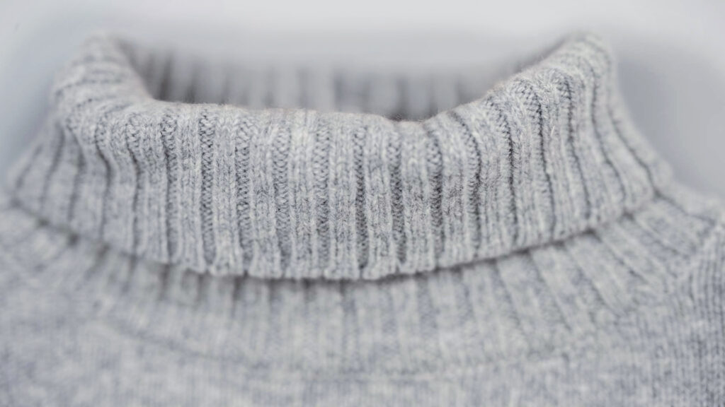 Stickad polotröja i ren lammull med ribbad vikt krage 2×2.